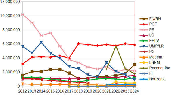 C’est flagrant à l’Assemblée nationale, où l’investiture par un parti est devenu indispensable pour être élu. Les barons locaux, qui pouvaient s’imposer à leur parti, quitte à gagner en dissident, ont presque disparu. Depuis 2017, on a vu arriver des vagues successives de députés macronistes, puis RN, LFI et NFP, au capital individuel souvent très faible, devant tout à leur investiture. Aux dernières municipales, de nombreuses listes se sont structurées autour des partis, parfois sans s’en revendiquer. Même Renaissance et LFI, qui s’affichaient comme des partis sans adhérent ou sans groupe local, quittent progressivement leurs formes gazeuses. Peut être qu’ils ont comme enjeu de survivre à leurs fondateurs respectifs. Un parti structuré avec des militants est résilient. Le PCF est encore là pour longtemps.